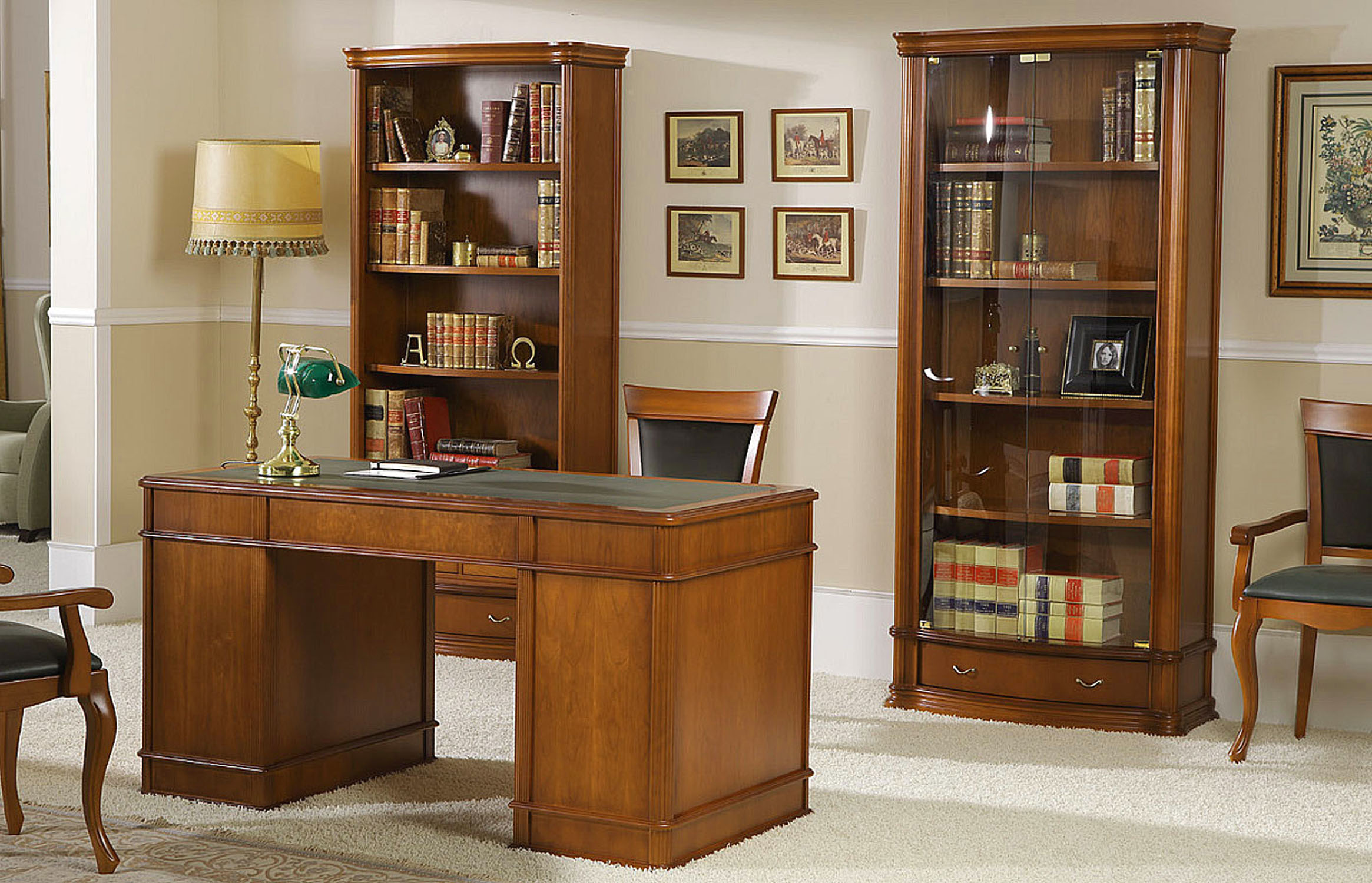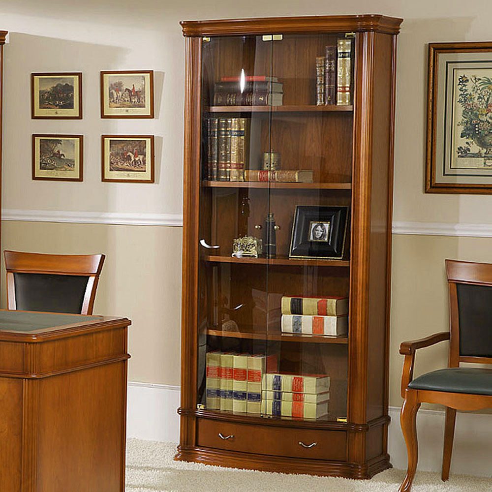 Библиотека с двумя стеклянными распашными дверцами, четырьмя съемными полками, ящиком снизу