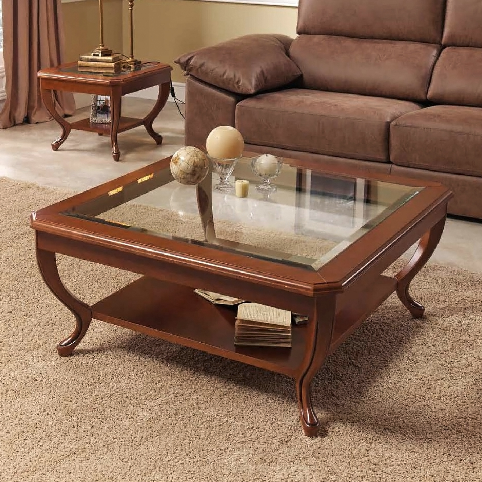 Hожки выполнены из массива бука, большая квадратная столешница со стеклом.