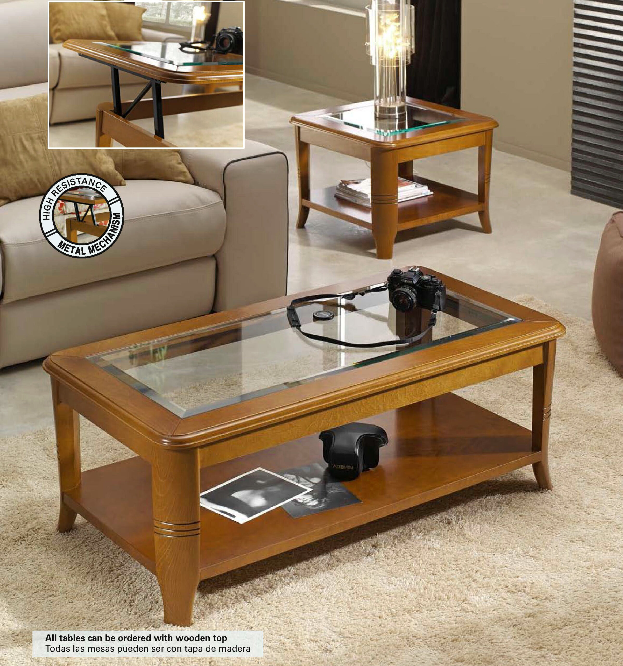 Полукруглые ножки с резьбой выполнены из массива бука. Столешница со стеклом.