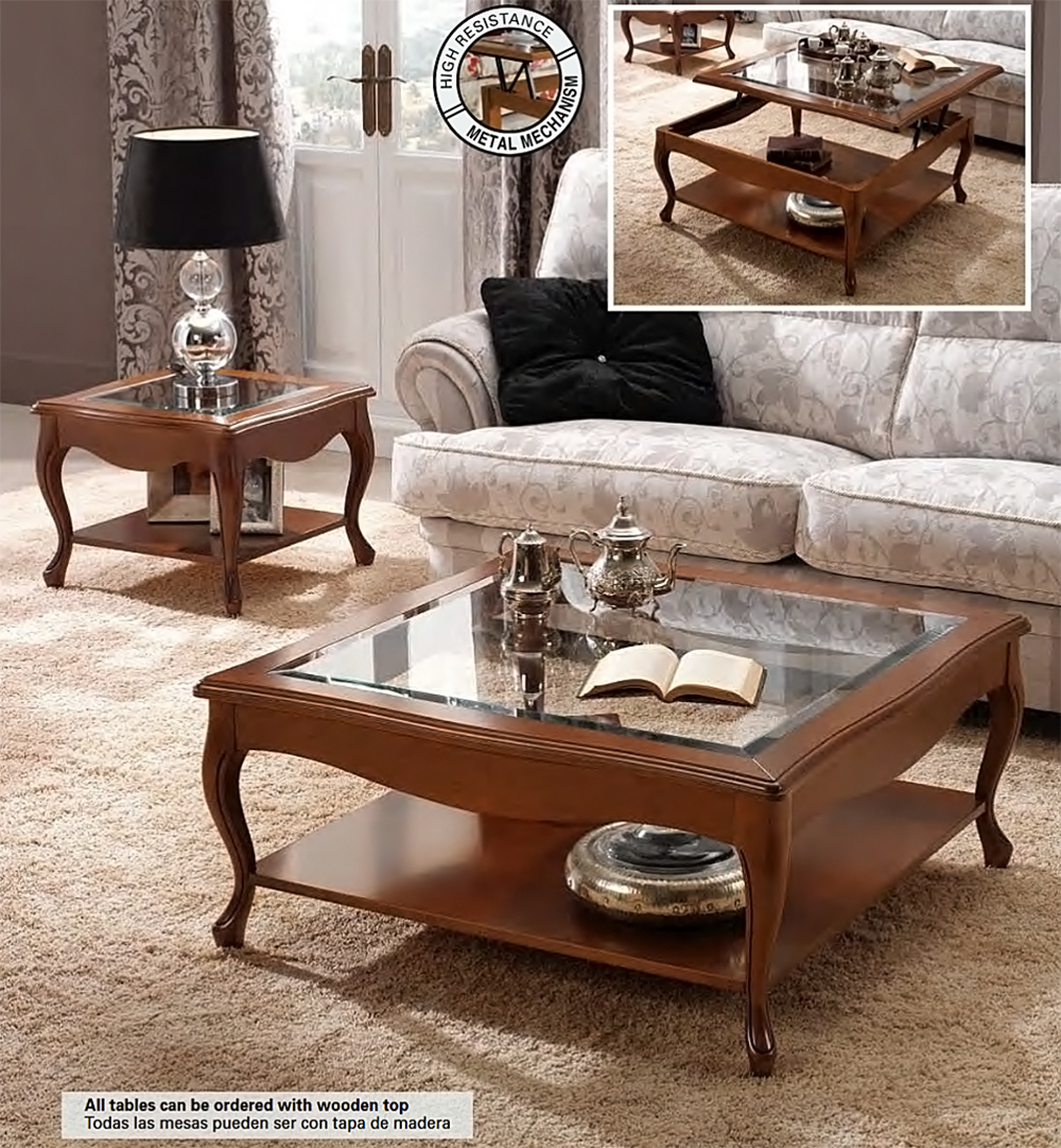 Ножки выполнены из массива бука, поднимающаяся столешница со стеклом.
