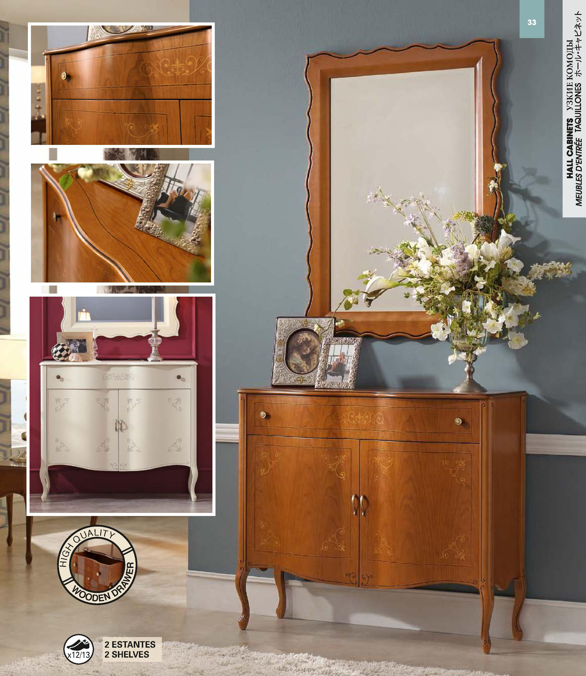 Прямоугольной формы с резьбой на фасаде и по краям. Изготовлено из массива бука. Крепится к стене как вертикально так и горизонтально.