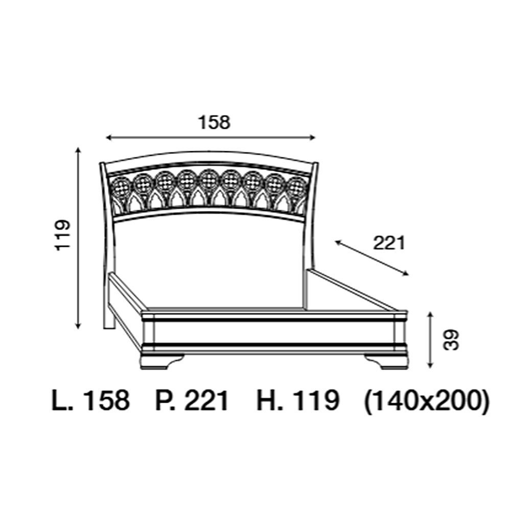 Спальное место: 140х200 см., 160х200 см., 180х200 см.