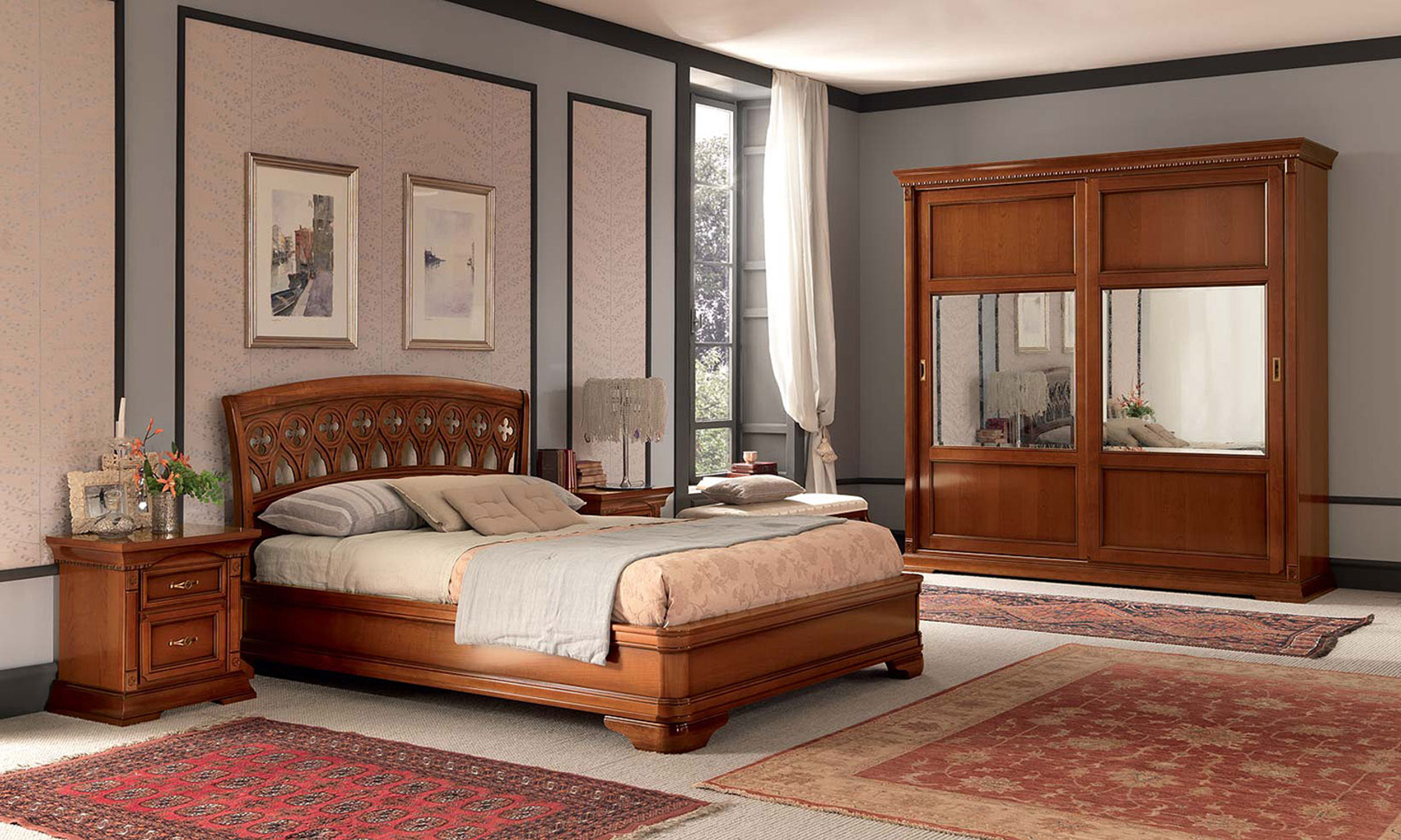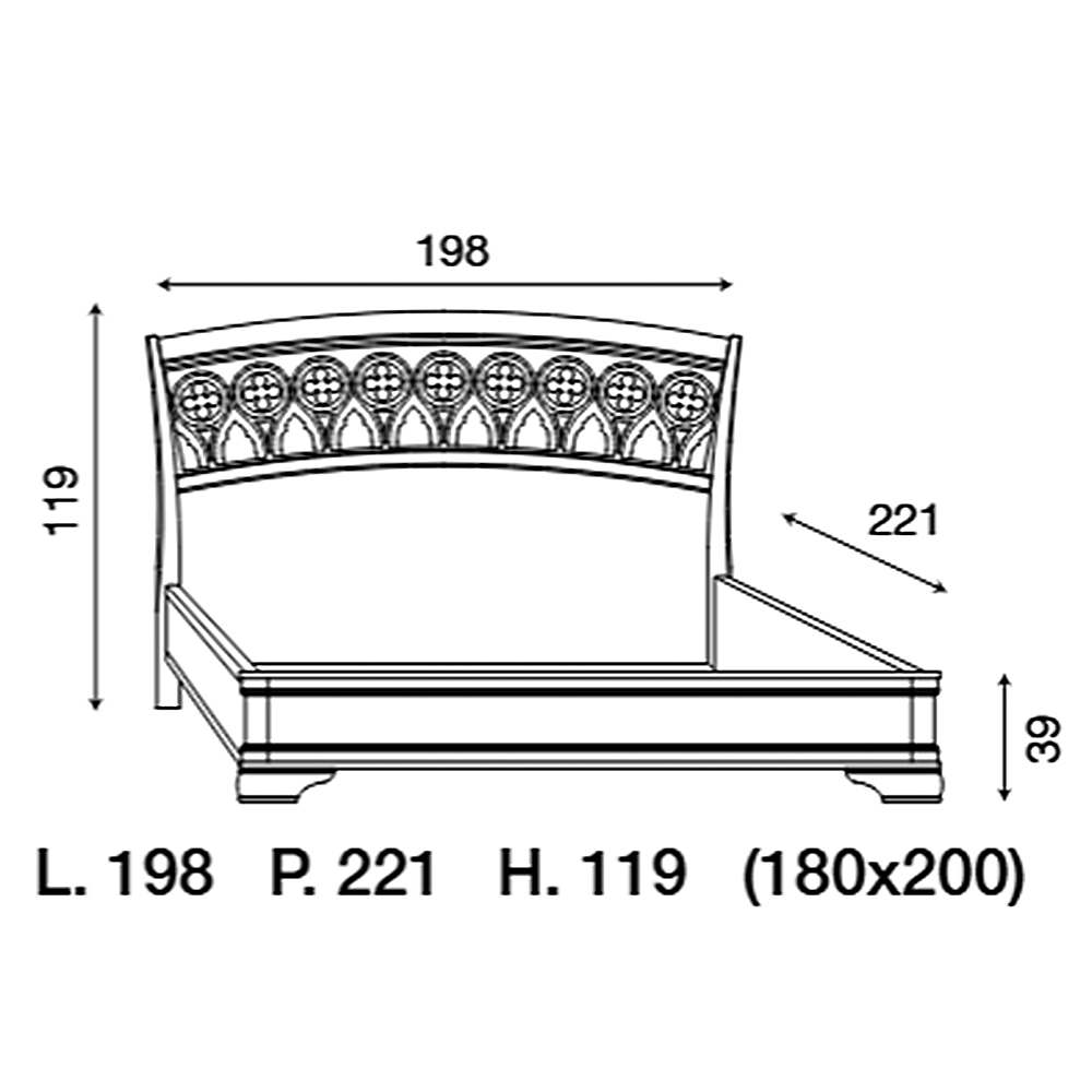 Резное деревянное изголовье, каркас без изножья