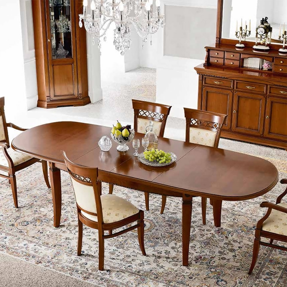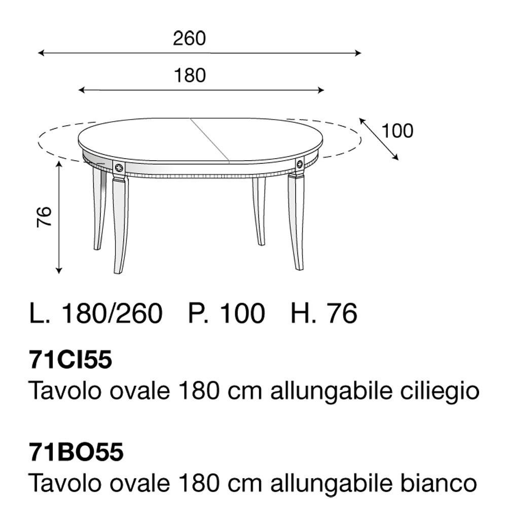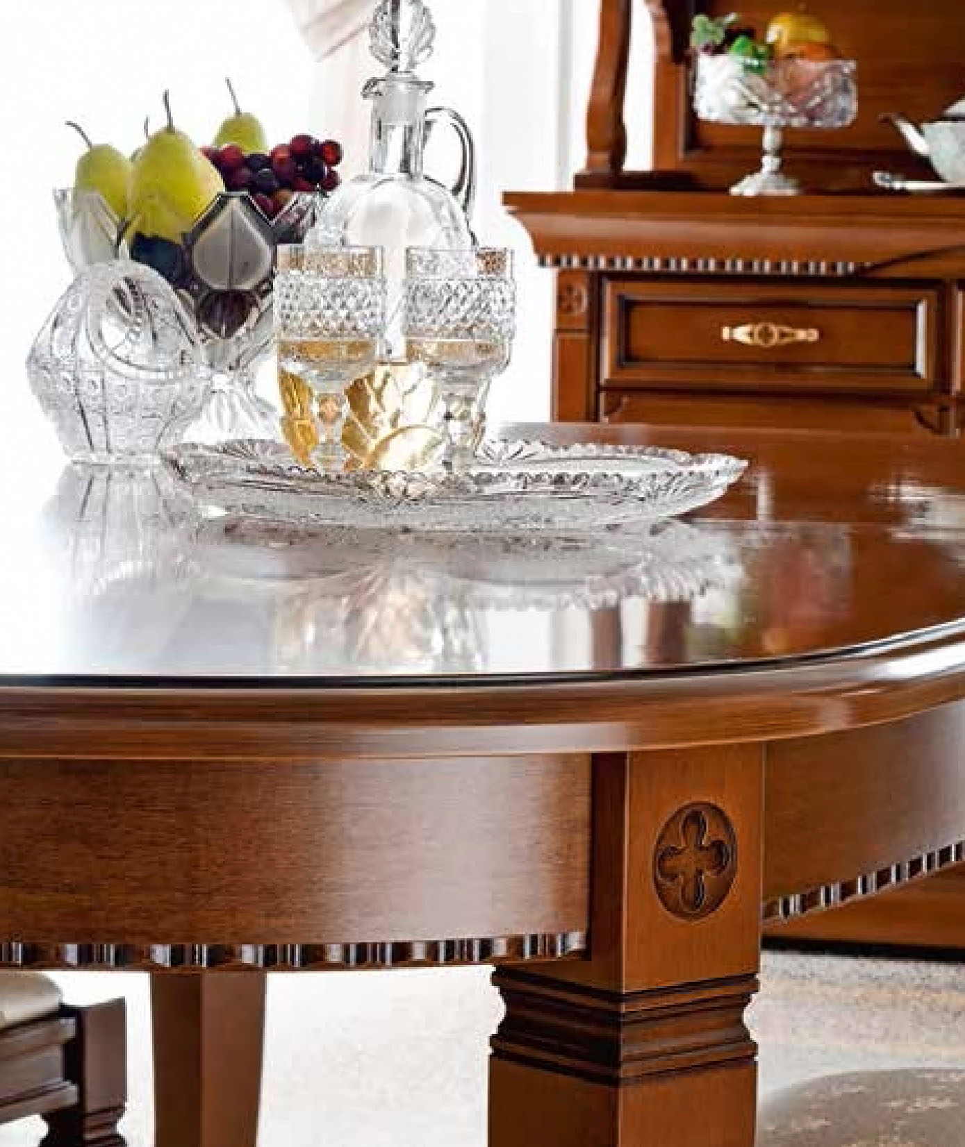 Стол обеденный овальный раскладной Палаццо Дукале Прама на четырех ножках из массива, оснащён удобным раскладным механизмом, позволяющим увеличить длину до 260 см, что делает его идеальным решением для приёма гостей и больших семейных ужинов.
