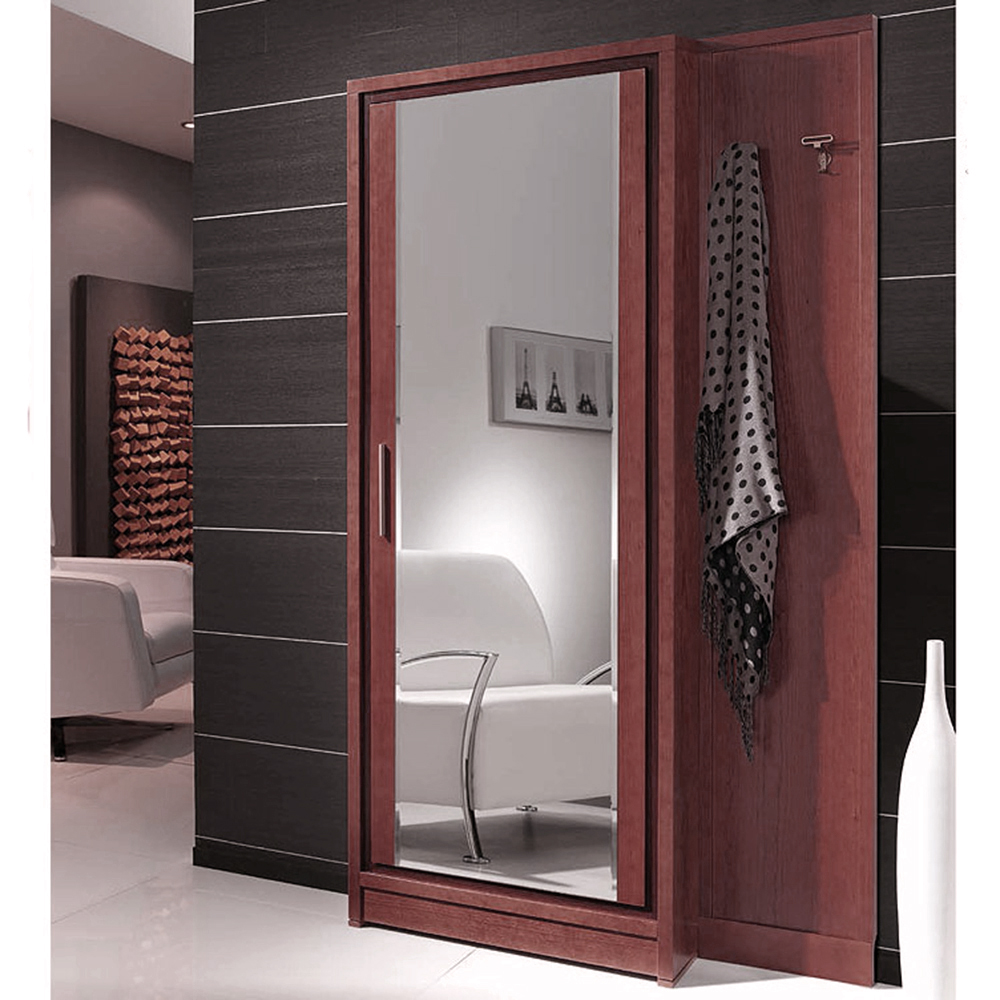 Выполнена в виде шкафа с большой зеркальной дверью