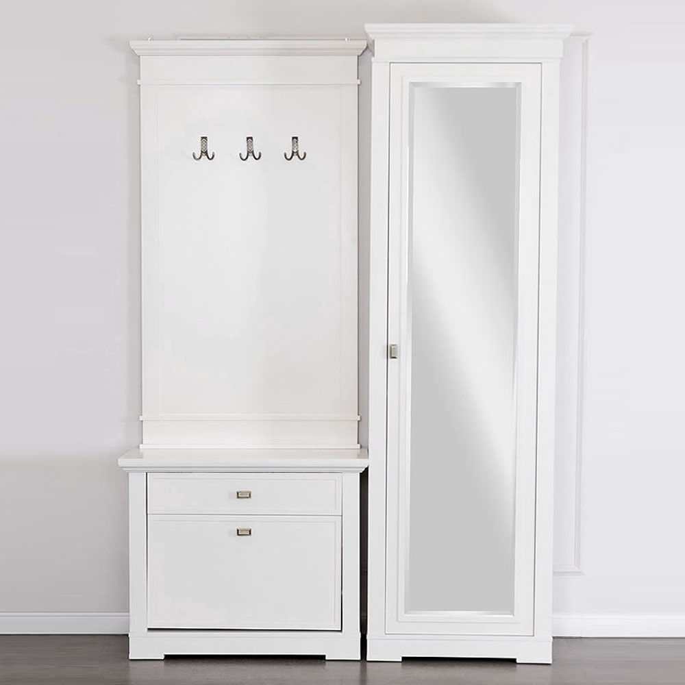 Шкаф с зеркалом, вешалка настенная на три крючка, обувница