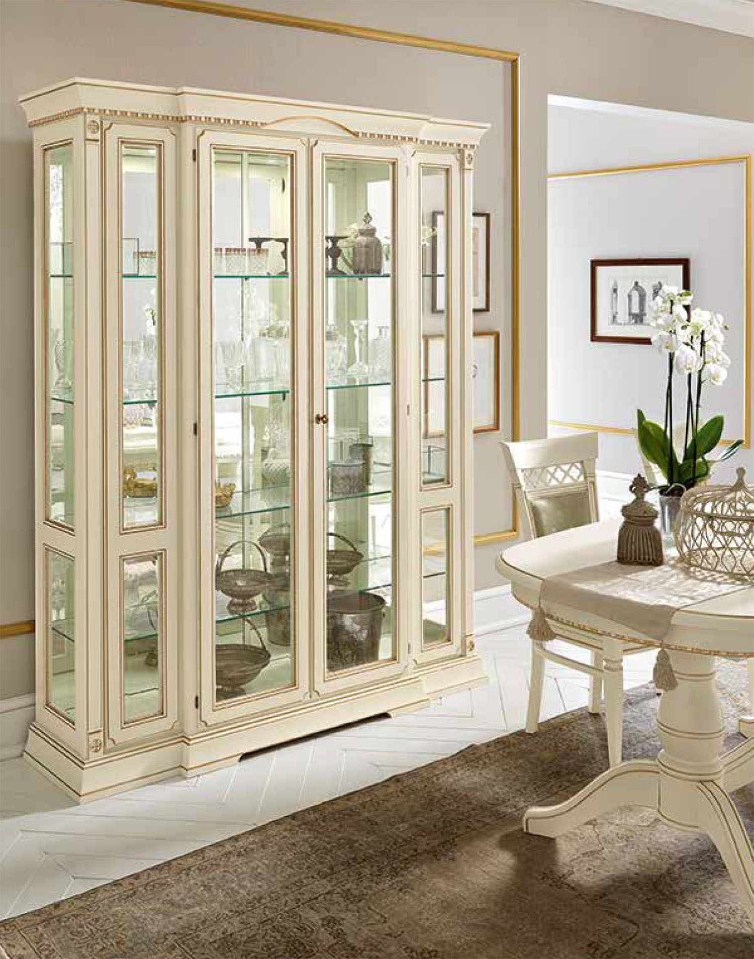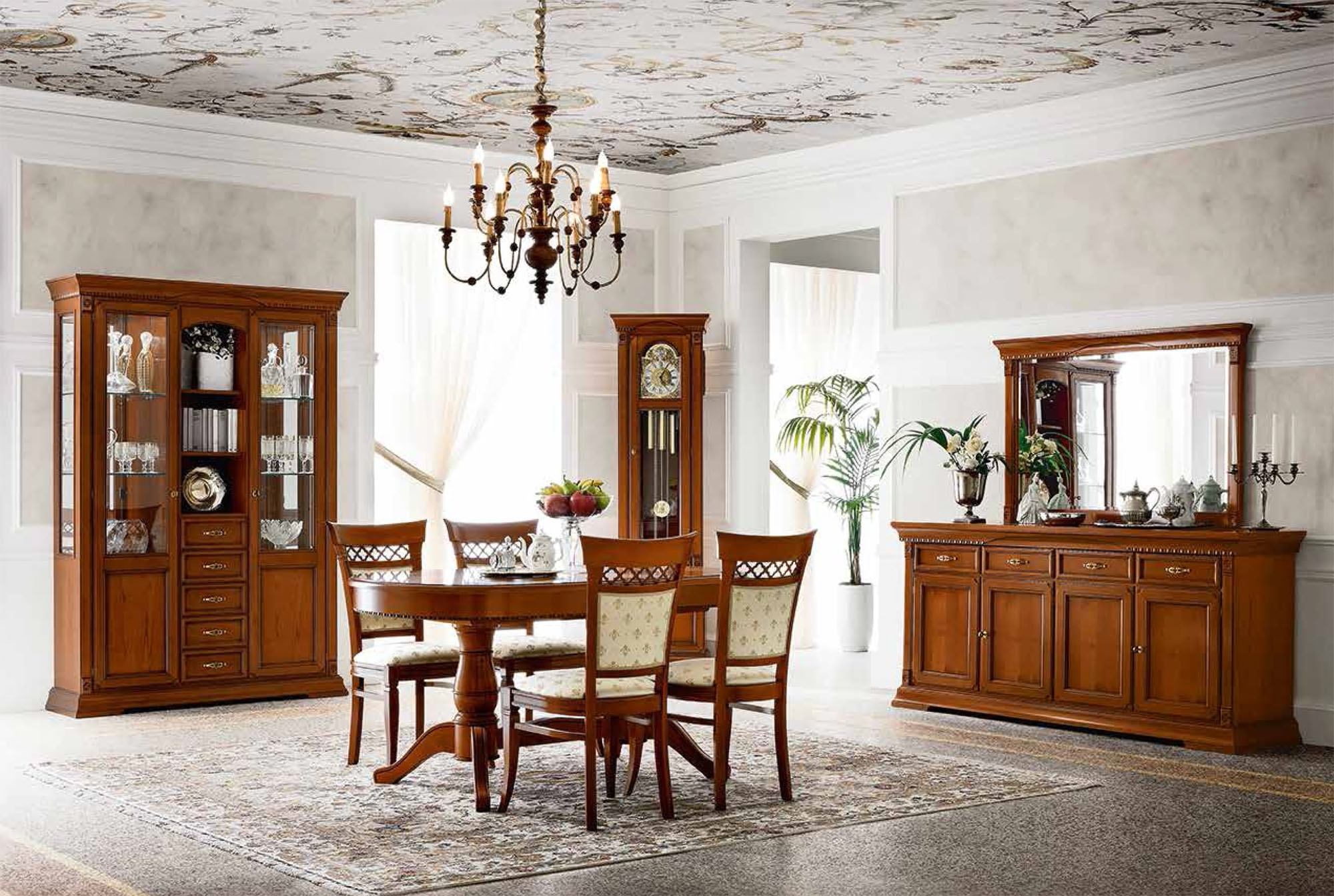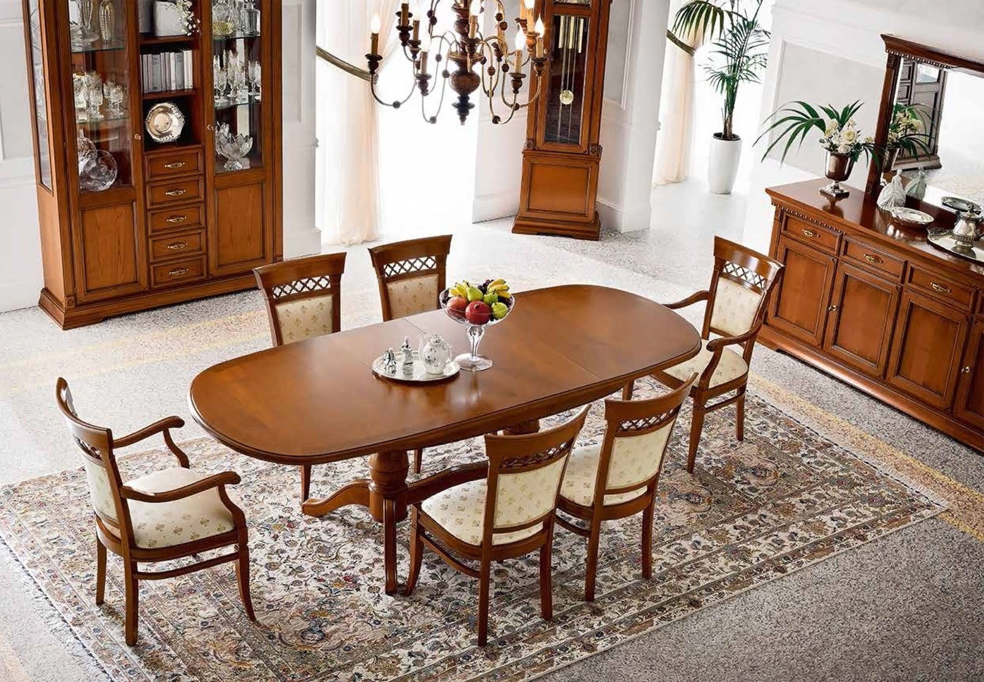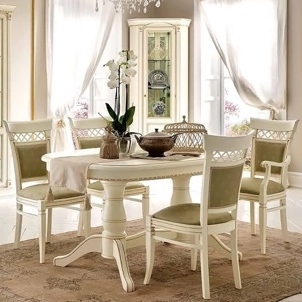 Стол гармонично сочетается с интерьерами в стиле классика, неоклассика и традиционная итальянская столовая.