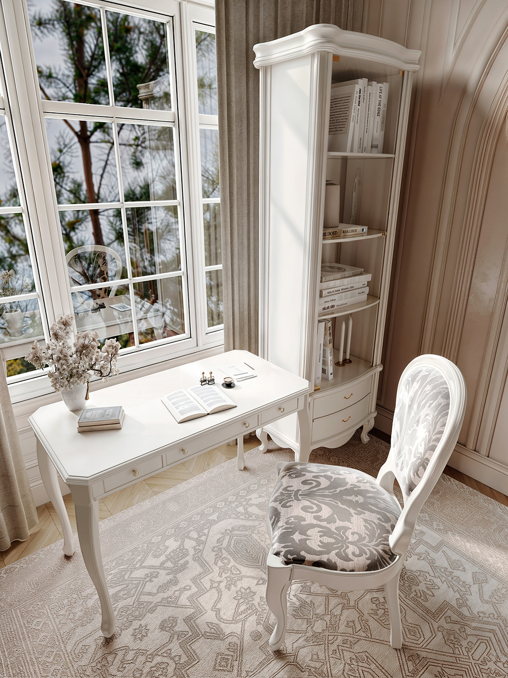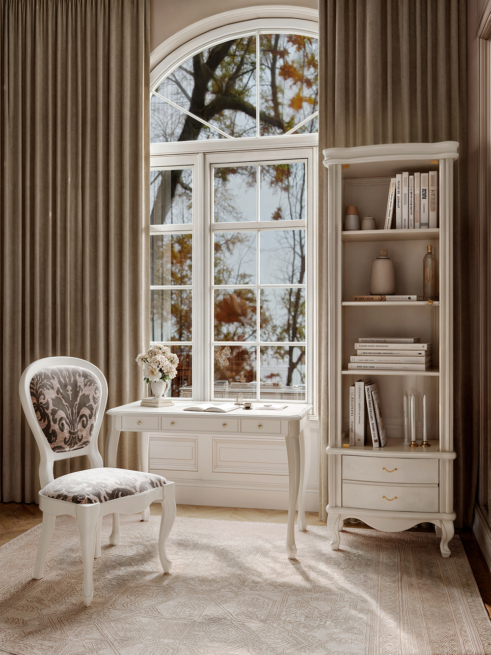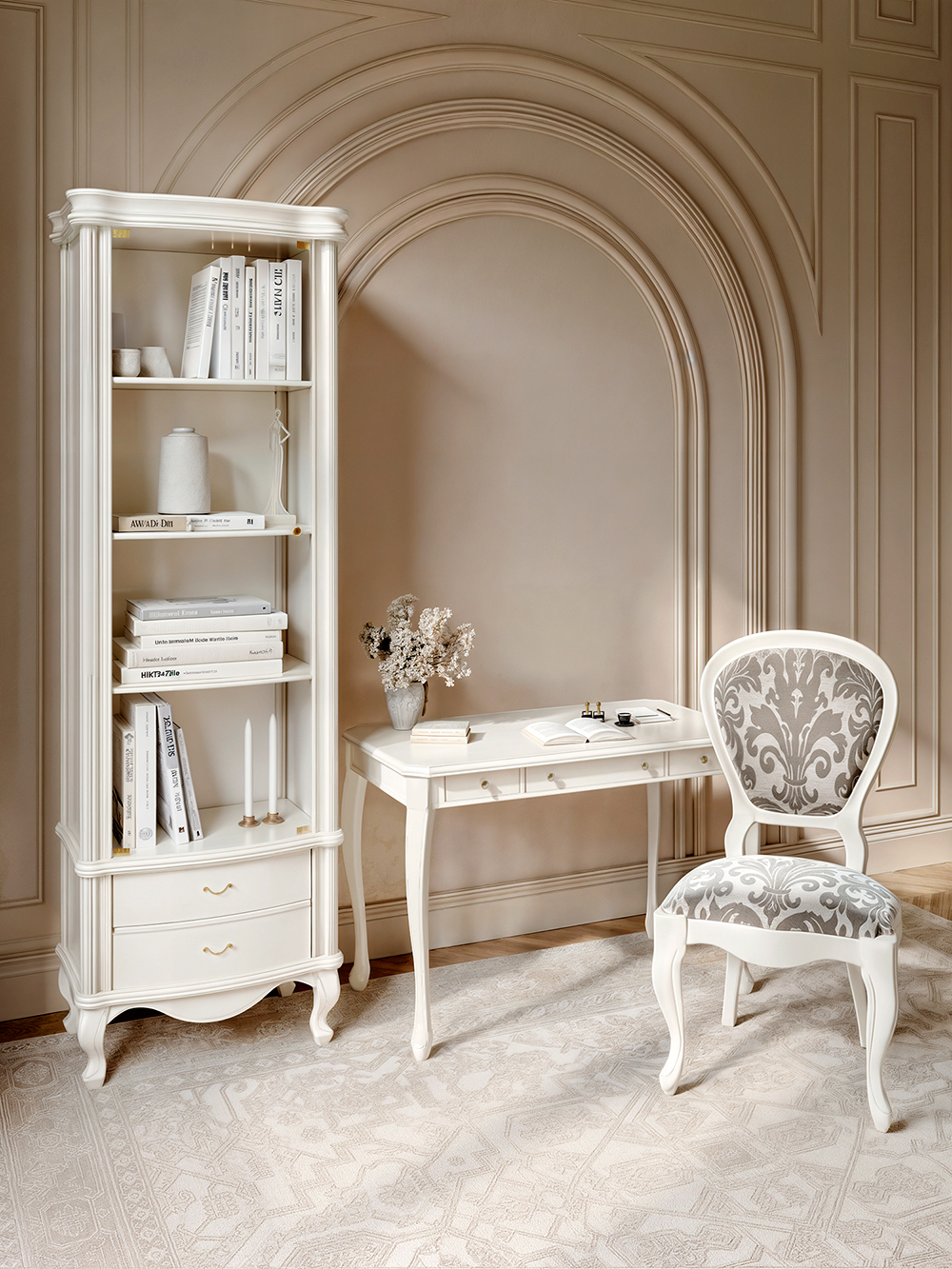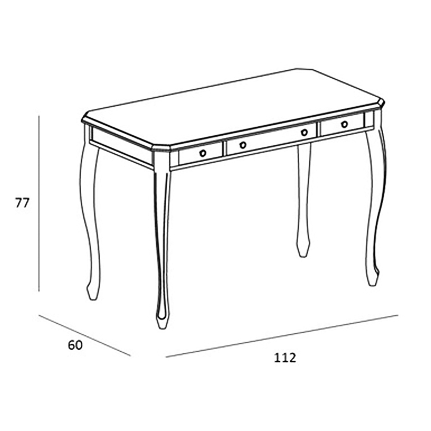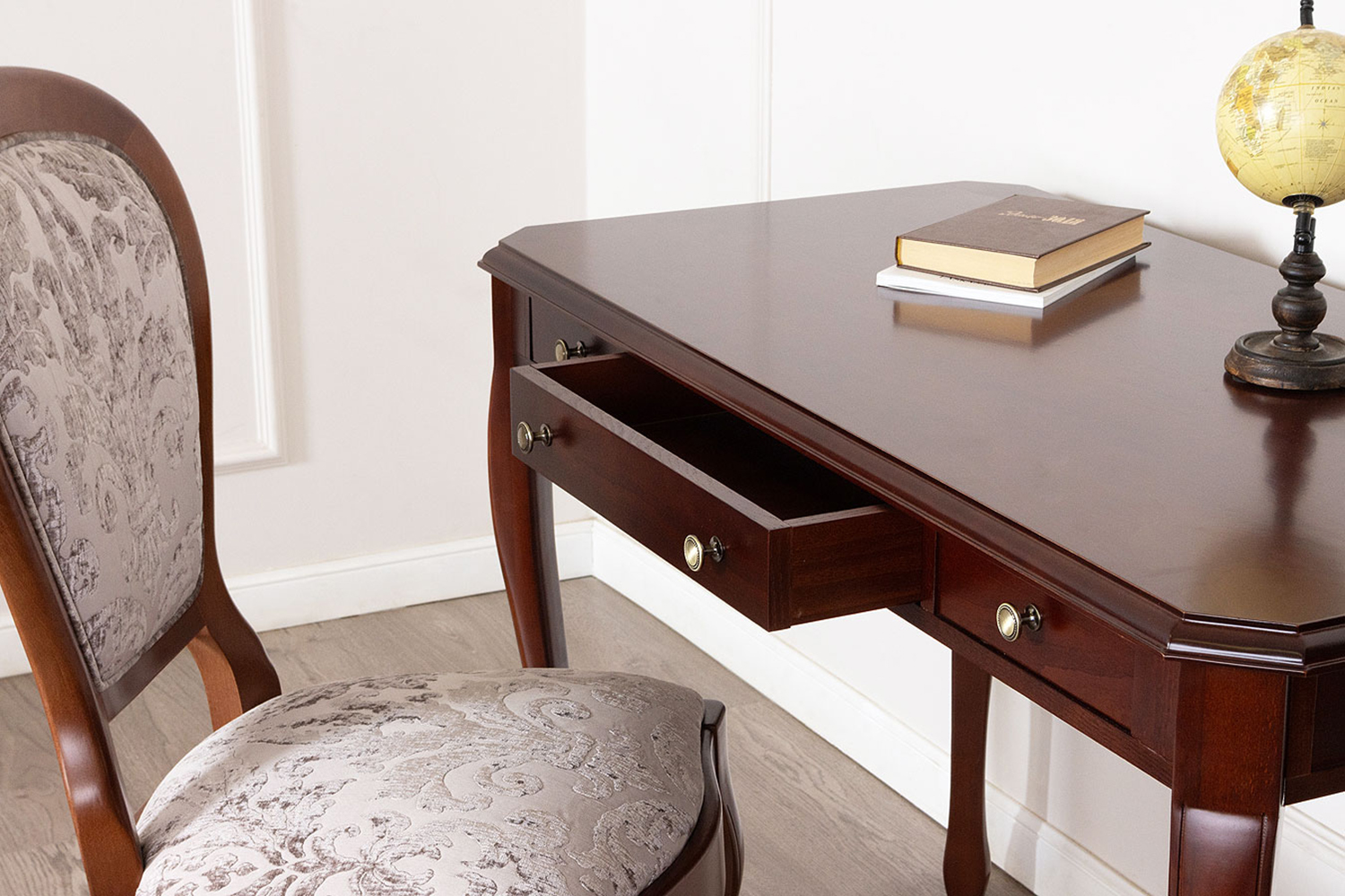 Три выдвижных ящика, ножки с резьбой из массива бука, испанская фурнитура