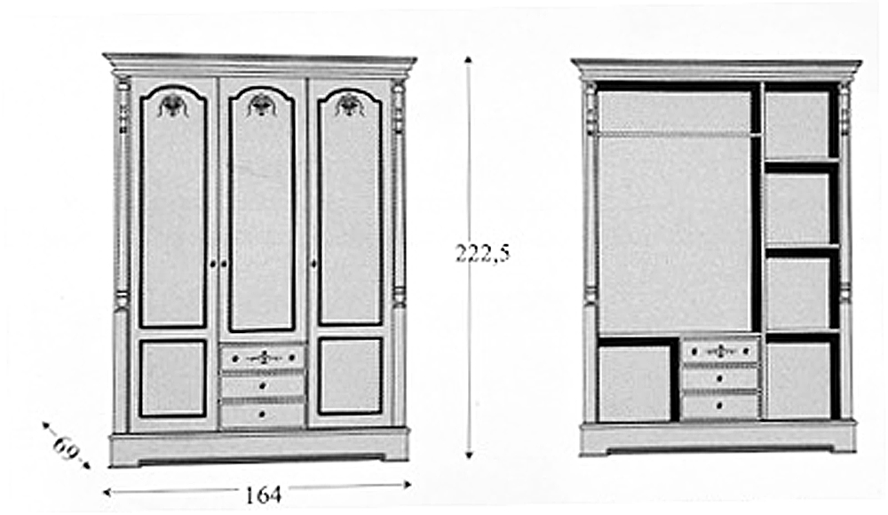 Шкаф трехстворчатый испанского производства в классическом стиле.