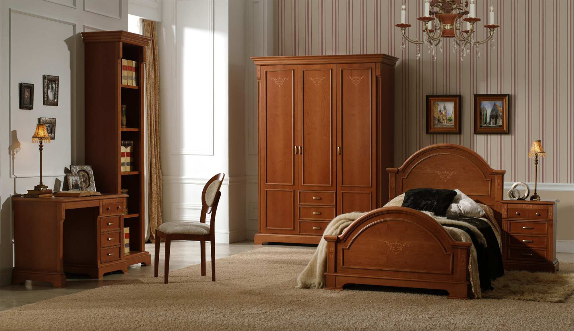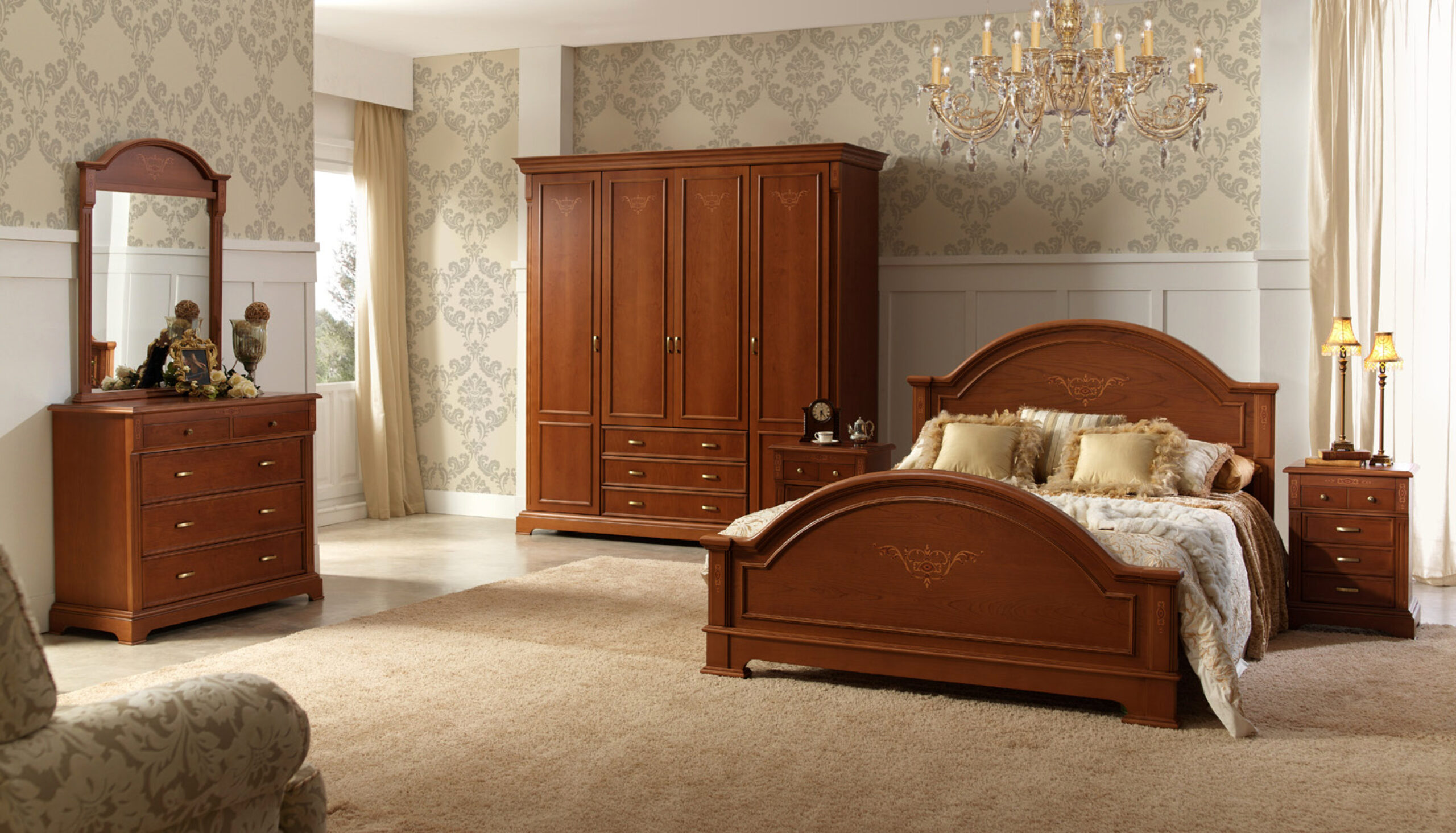 Подходит для классических спален, а также интерьеров в стиле неоклассика, арт-деко и модерн-классик.