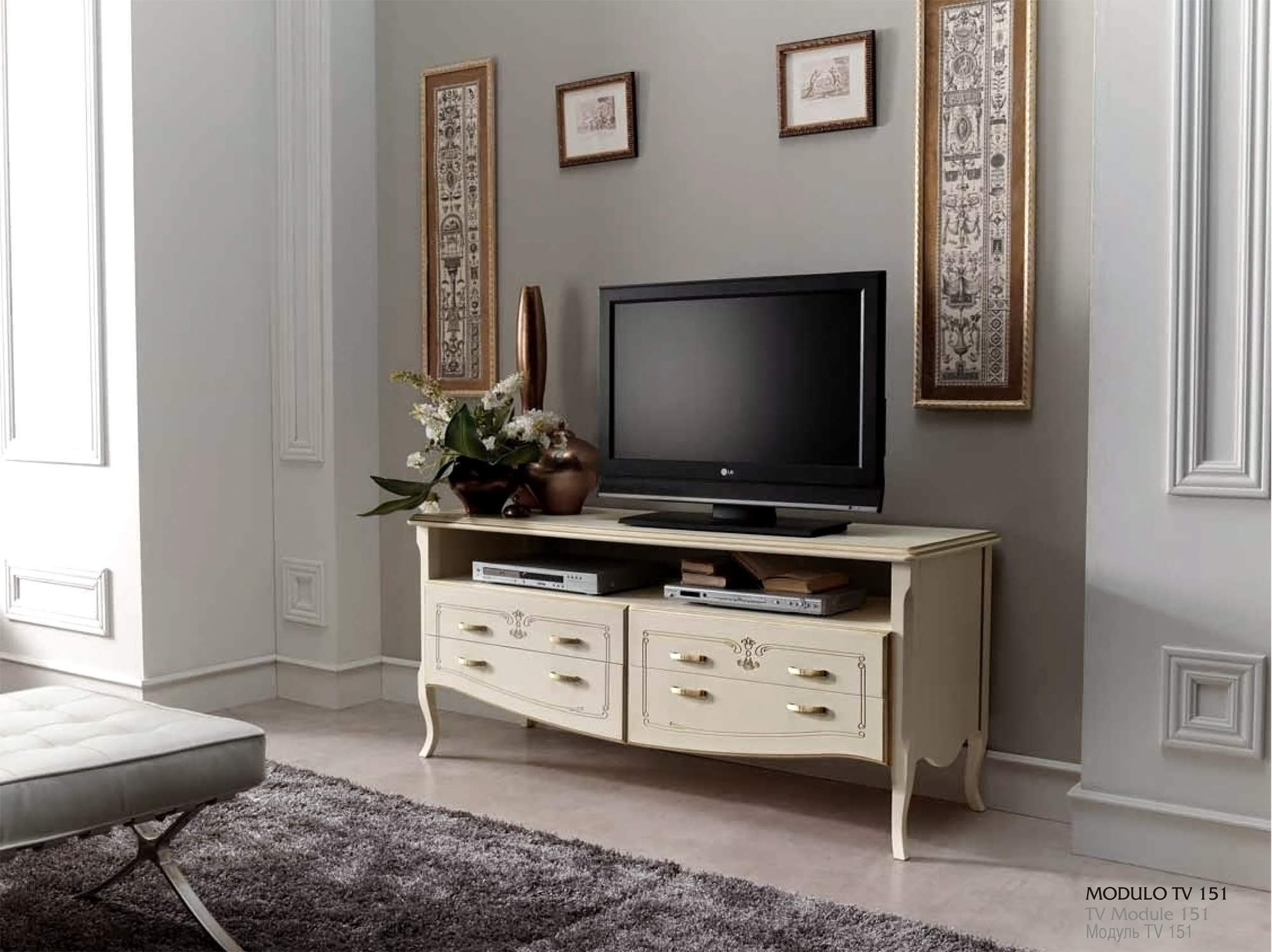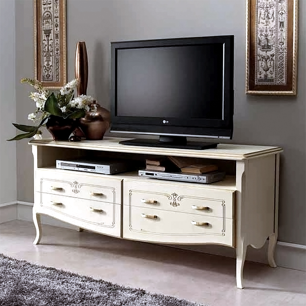 Тумба под ТВ из шпона в цвете «слоновая кость с серебром» (Испания) — воплощение утончённой классики