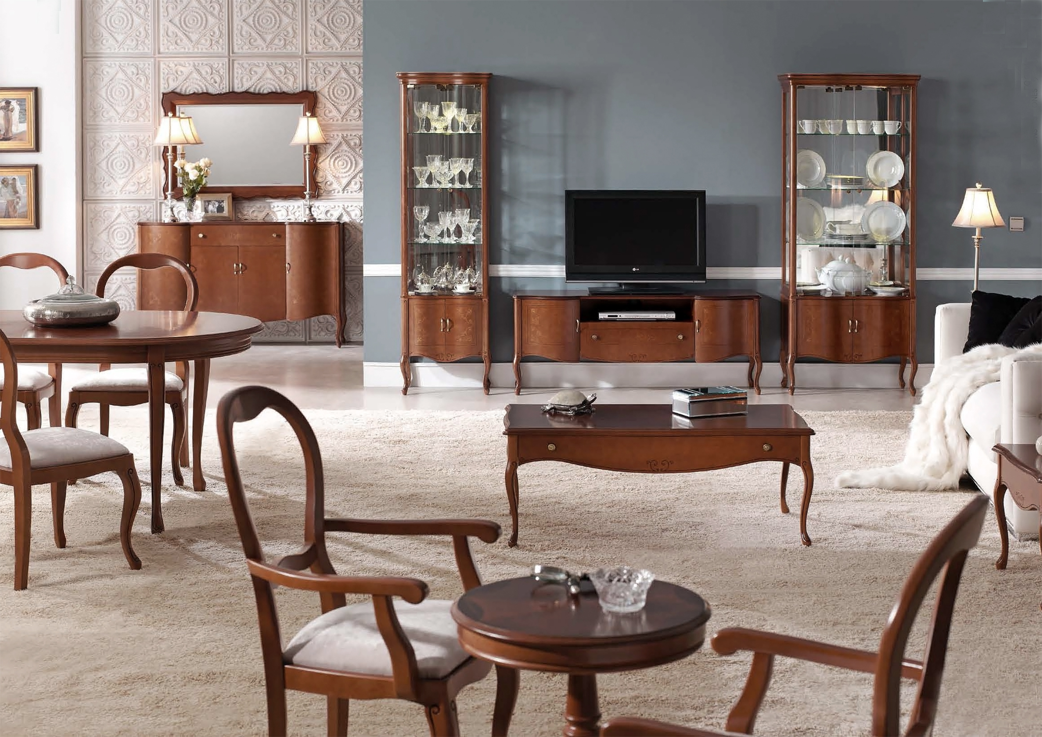 Преобразите свою гостиную с помощью изысканной тумбы под телевизор от испанского производителя. Сочетание надёжного массива бука и благородного натурального шпона создаёт безупречный баланс между прочностью и эстетикой. Эта модель — воплощение классического стиля с продуманной функциональностью.